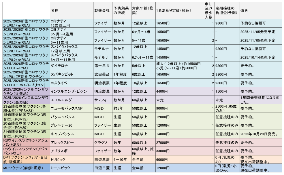 ※この秋(令和7年秋)、コロナワクチンは下記5社の製品が選べます。